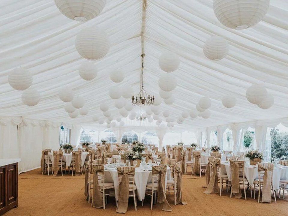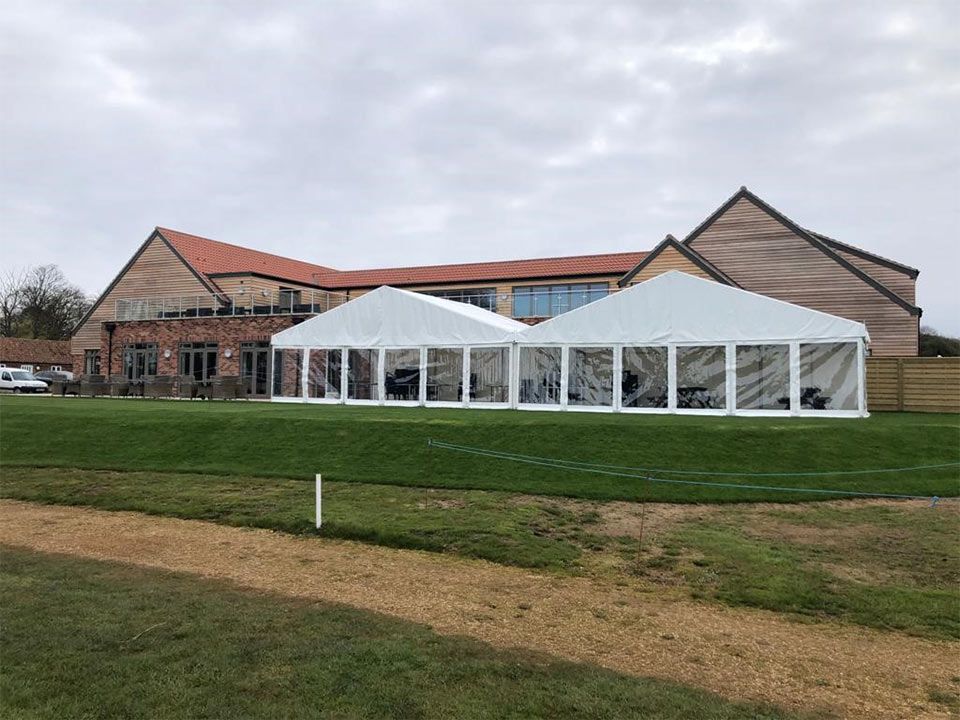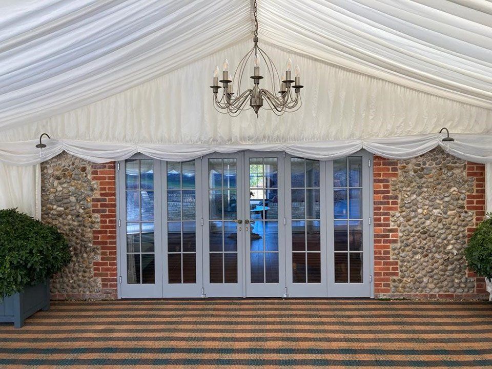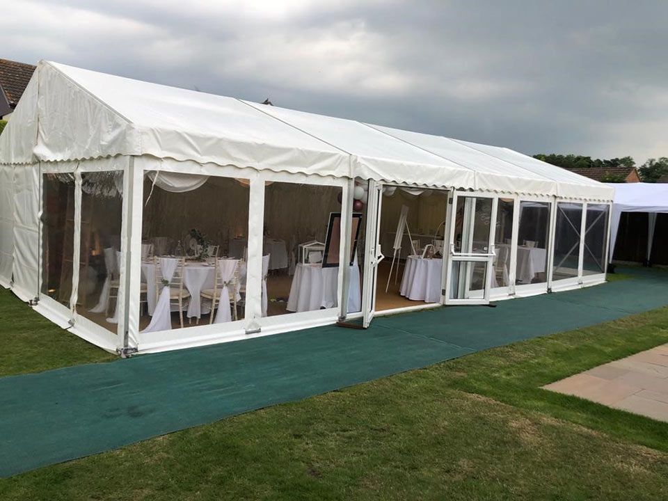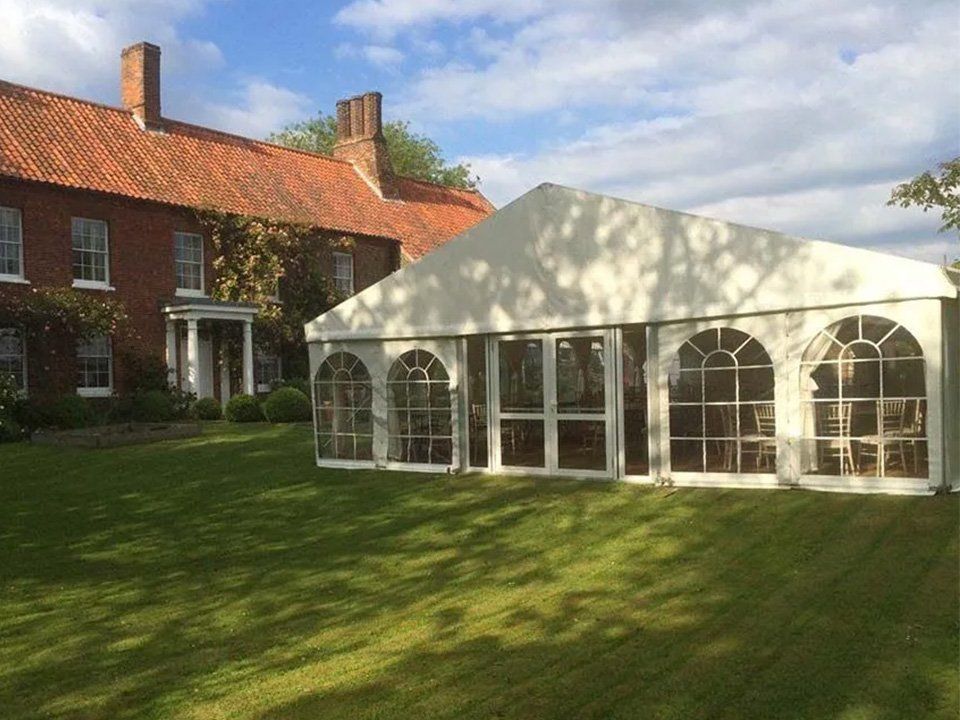 Traditional marquees look grand and create a great atmosphere. They have attractive Georgian or clear-span window walling, can be heated, decorated with various interior linings in a choice of colours, and they can even house your flower beds and small trees. Solid security walls with fire exits are another option along with screened areas for those hideaways (such as equipment or supplies) and fully lined walkways enhanced with double glazed french doors.