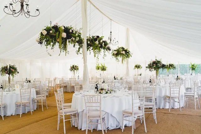 Our traditional marquees are made of the highest quality PVC and are wonderful for weddings. They are suitable for small and larger venues, and can comfortably hold over 1000 guests on flat grass areas.